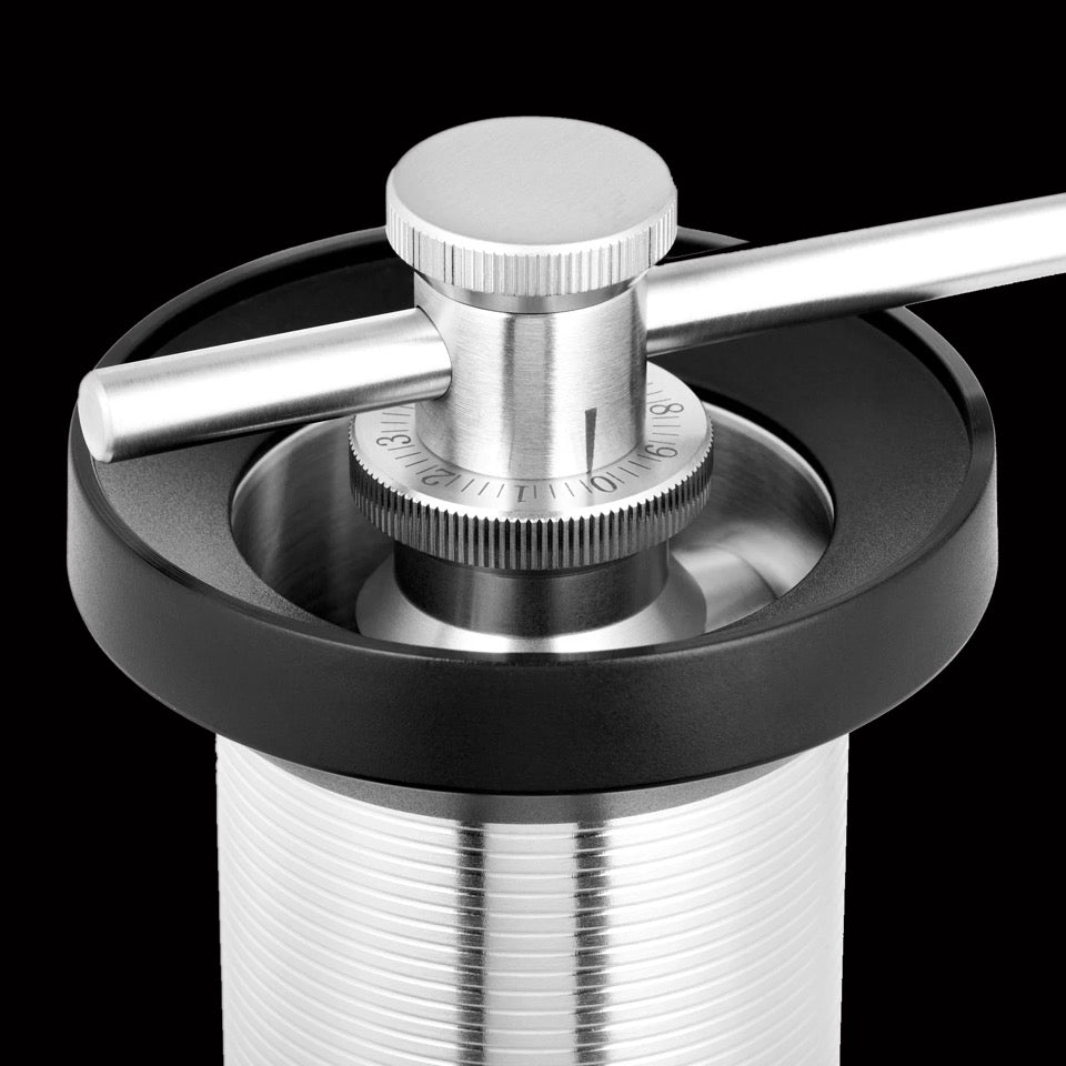 The adjustment is stepless, effortless and easily reproductible. Whether you want to grind for Turkish coffee, espresso, filter, cold brew or anything coarser or finer, you will find the perfect setting.
